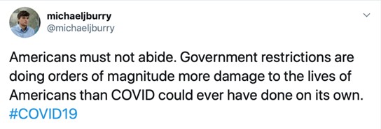 By mid-2020, Burry issued dire warnings that the Covid-related government restrictions would do more damage than the virus. By 2022, even researchers from John Hopkins acknowledged this truth. Covid restrictions were judged to have virtually no effect, while businesses were lost, children fell behind in school, and non-Covid deaths from addictions, suicide and neglected health screenings skyrocketed.